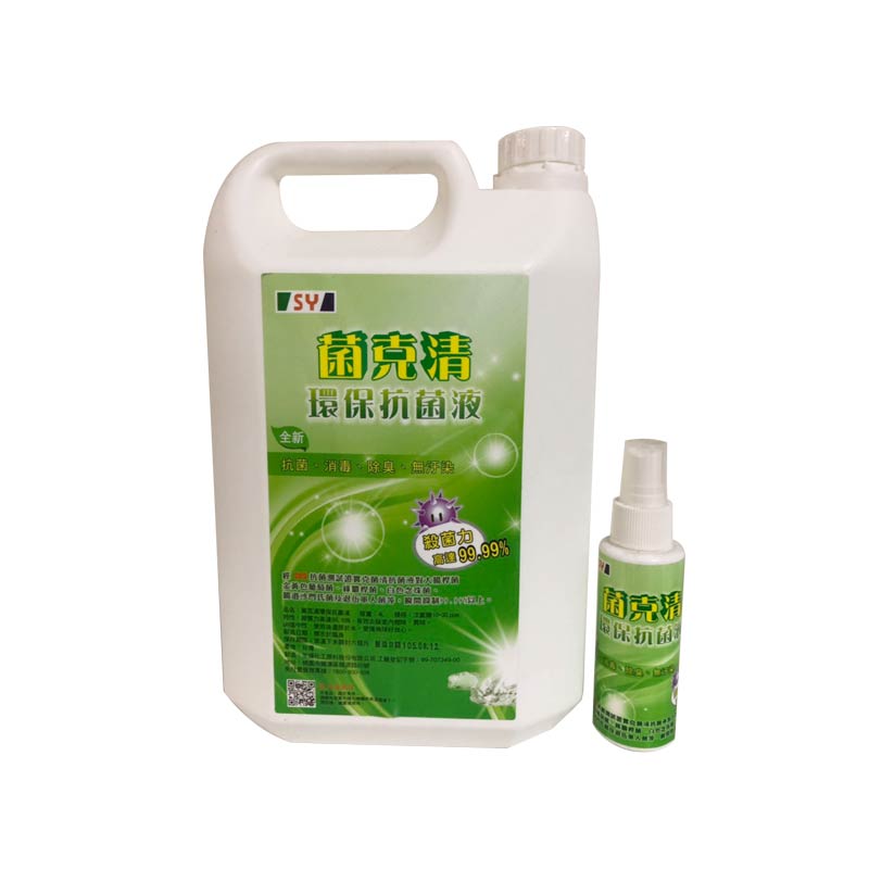 - 經SGS抗菌測試證實菌克清抗菌液對大腸桿菌、金黃色葡萄球菌、綠膿 桿菌、白色念珠菌、腸道沙門氏菌及退伍軍人菌等,瞬間抑制99.9%以 上壞菌。